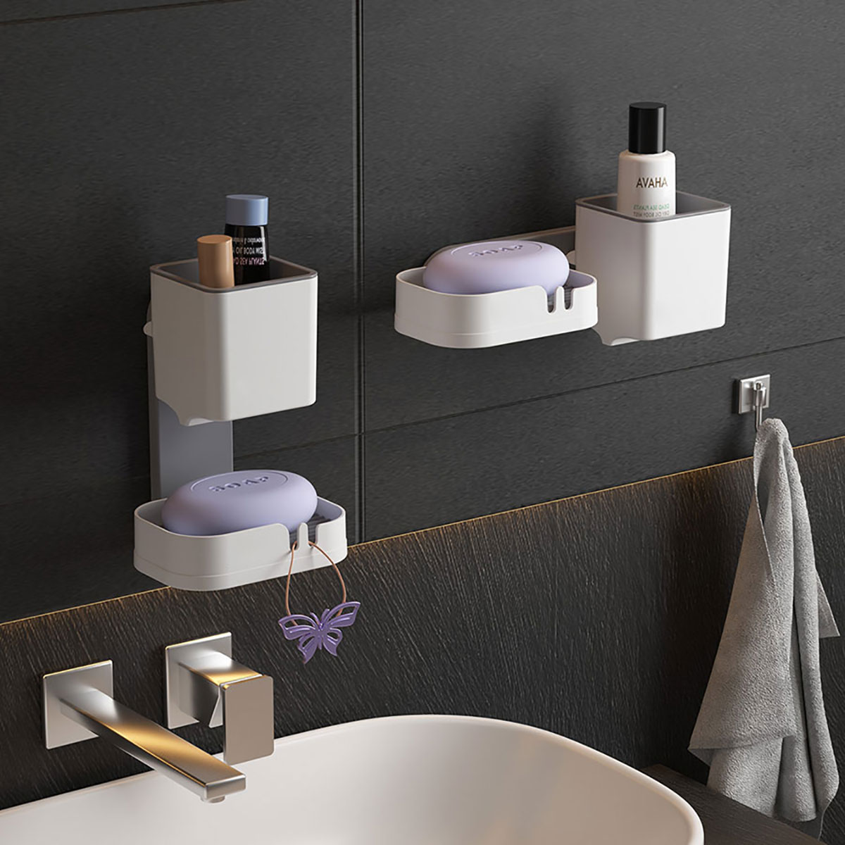Size: 單個產品:85*85*98mm 164*103*36mm 壁掛桿:185*62mm