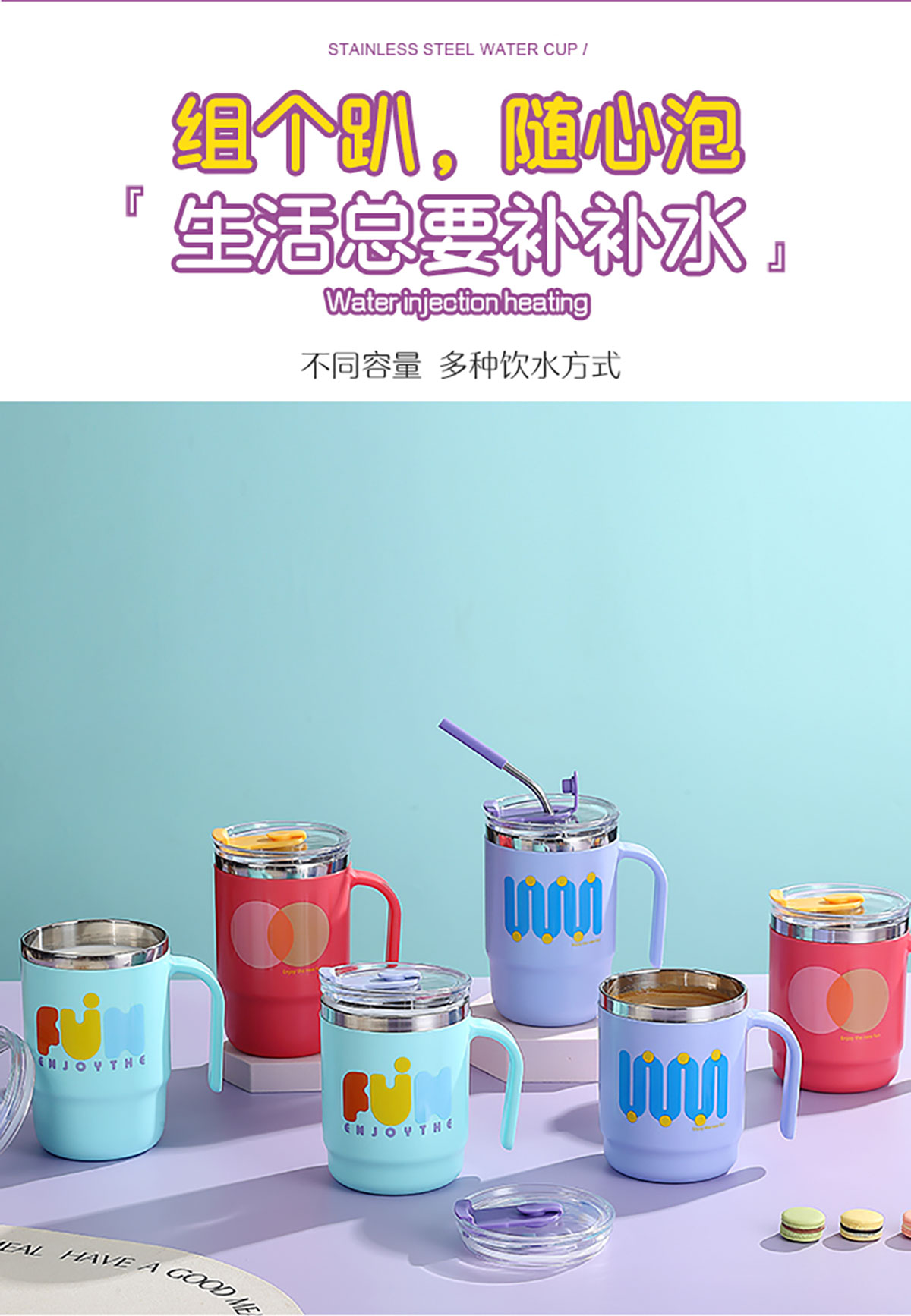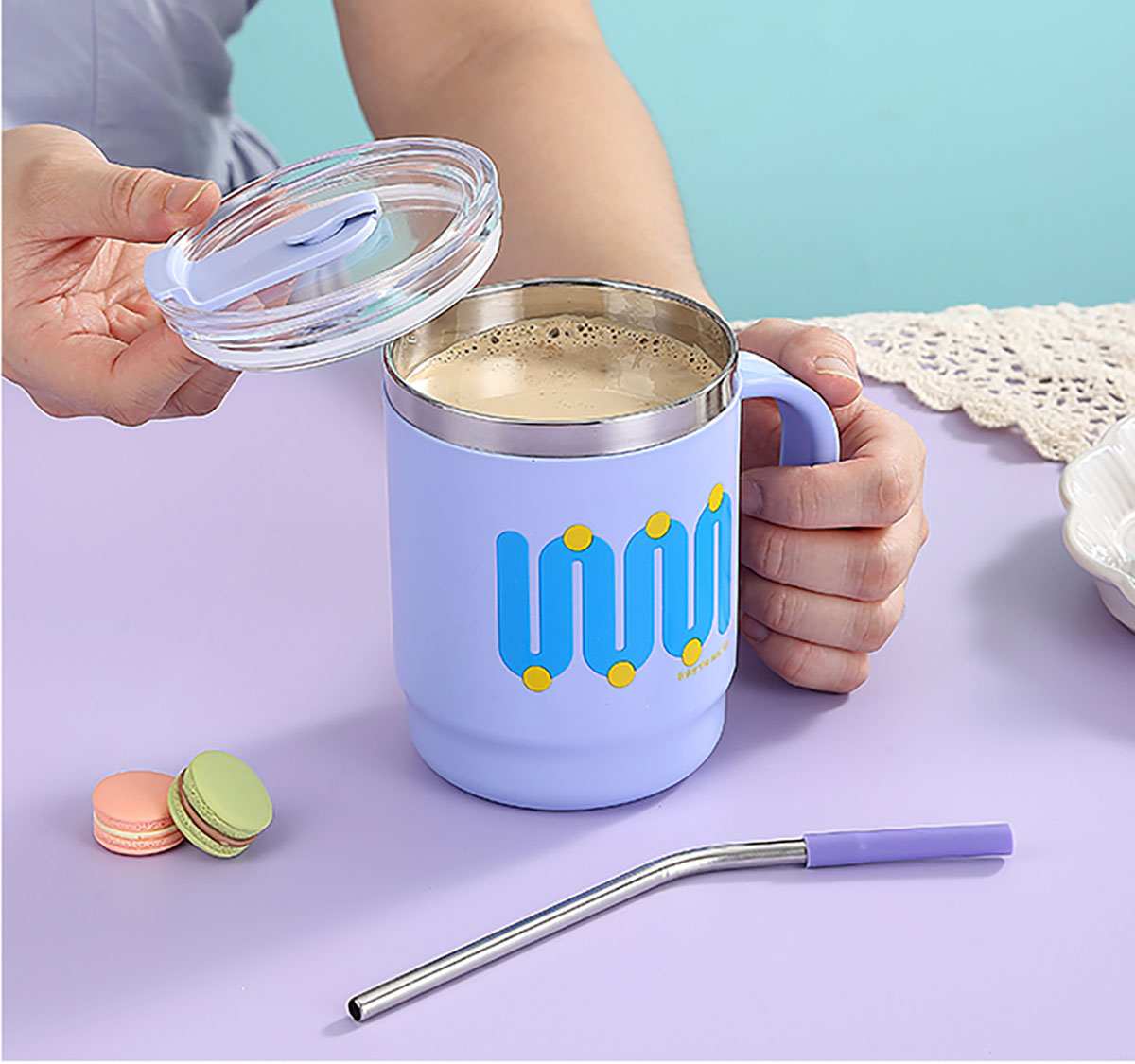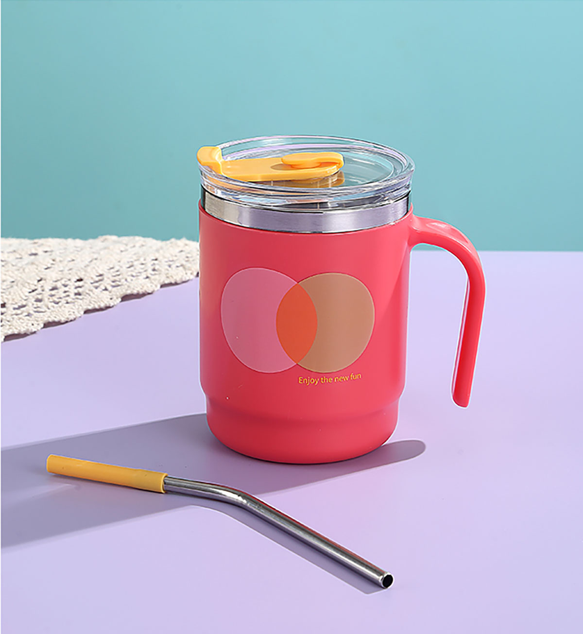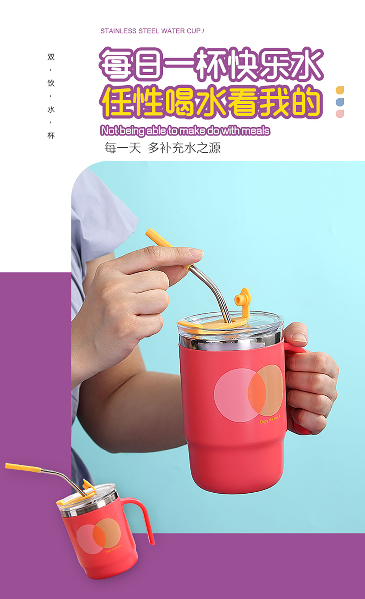 400ml/500ml時尚不銹鋼雙飲杯(配不銹鋼吸管)