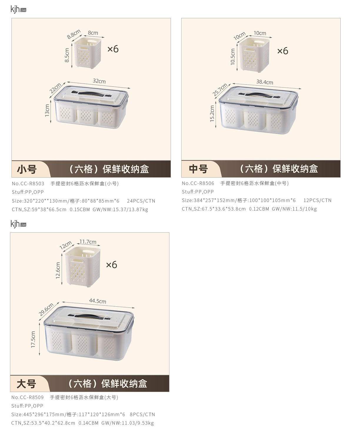 手提密封2格/3格/6格瀝水保鮮盒(小號(hào)/中號(hào)/大號(hào))
